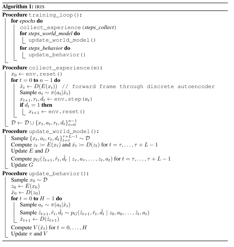 to the decoder. However, this breaks the computation graph, completely ignoring the encoder during training. What the authors of IRIS do, is simply the following: